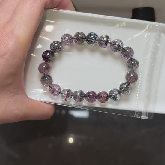 10mm Natural Genuine Black Red Purple super seven Rutilated Quartz Crystal beads bracelet
