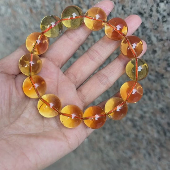 Natural Citrine yellow Citrine Quartz Crystal beads bracelet 17mm