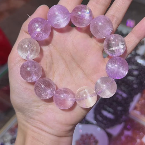 Natural Genuine kunzite beaded bracelet 17mm