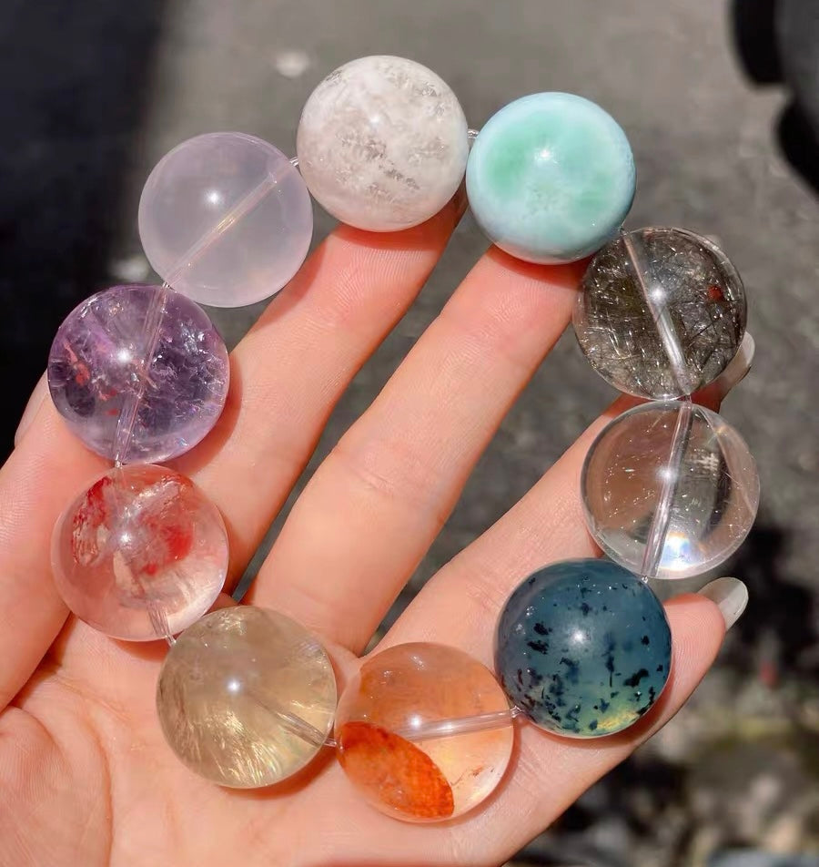 aquamarine beads,Rutilated Quartz,Black Silver Rutilated Quartz,Snow phantom quartz,Larimar beads,Rose quartz Crystal beads,Red Hematoid Lepidocrocite Quartz,Green asai quartz Crystal beads~Amethyst Quartz Crystal