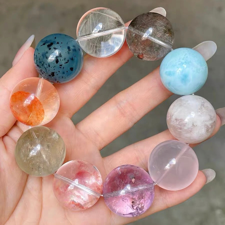 Natural Mixed Crystal Gemstone beaded bracelet 22mm