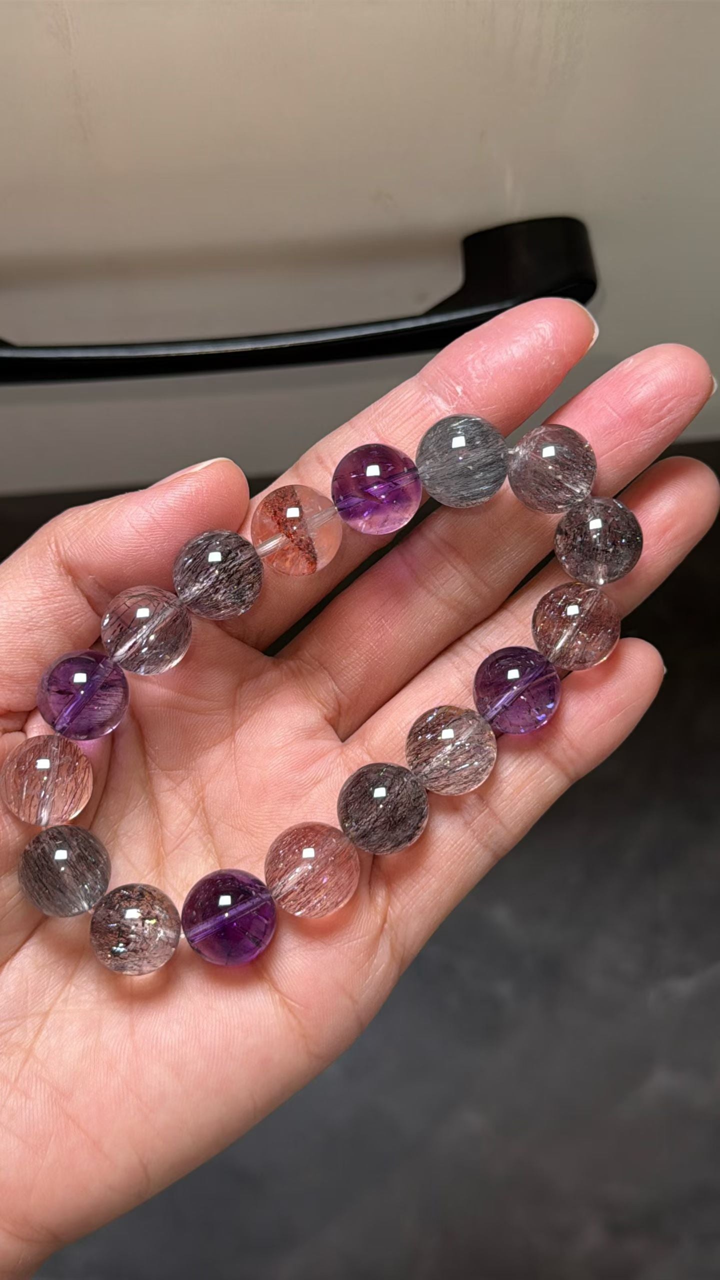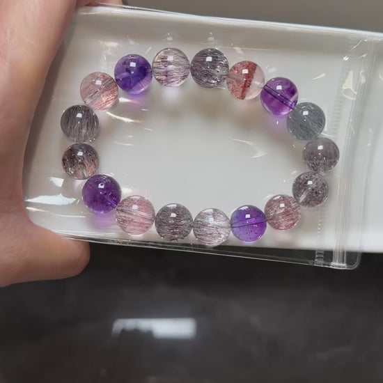 Natural Multicolor super seven Rutilated Quartz Crystal beads bracelet 12mm