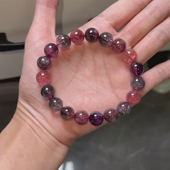 Natural super seven Rutilated Quartz Crystal beads bracelet,Lepidocrocite in quartz ,10mm