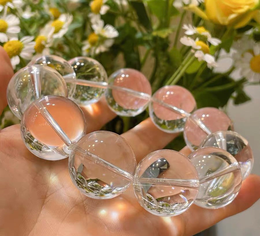Natural white clear Rock quartz Crystal beads bracelet 20mm